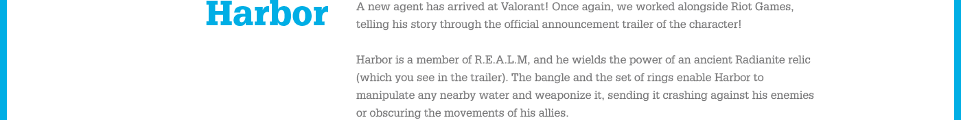 A new agent has arrived at Valorant! Once again, we worked alongside Riot Games, telling his story through the official announcement trailer of the character!